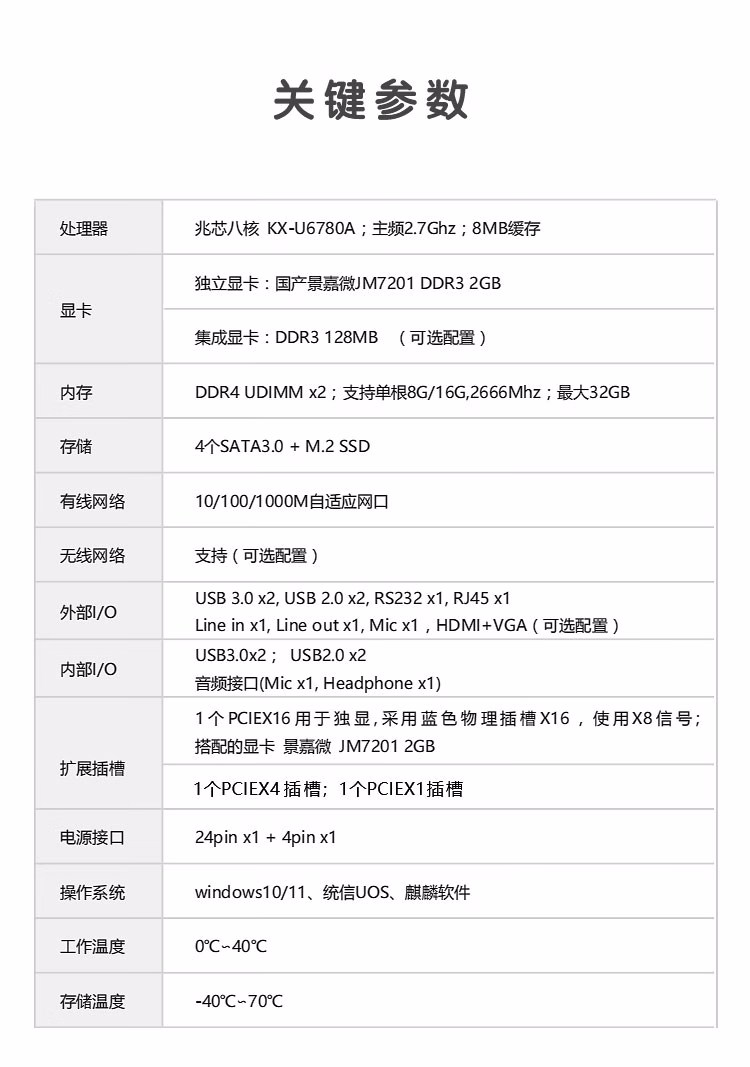 GITSTAR集特 国产化兆芯KX-U6780A台式机电脑主机GPC-100(16G内存/512GSSD/2G独显) 自营