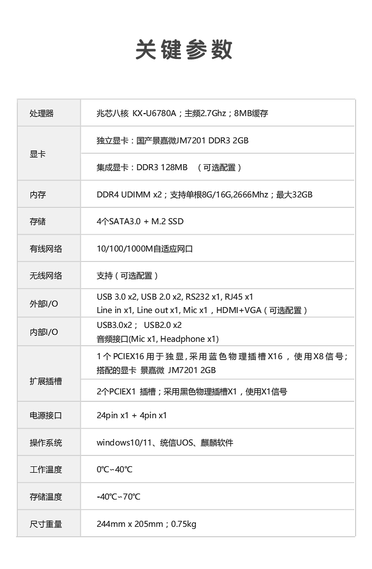 ¥2500.00GITSTAR集特 国产兆芯KX-U6780A八核工控主板GM9-6002主频2.7Ghz 支持Win/麒麟/UOS系统
