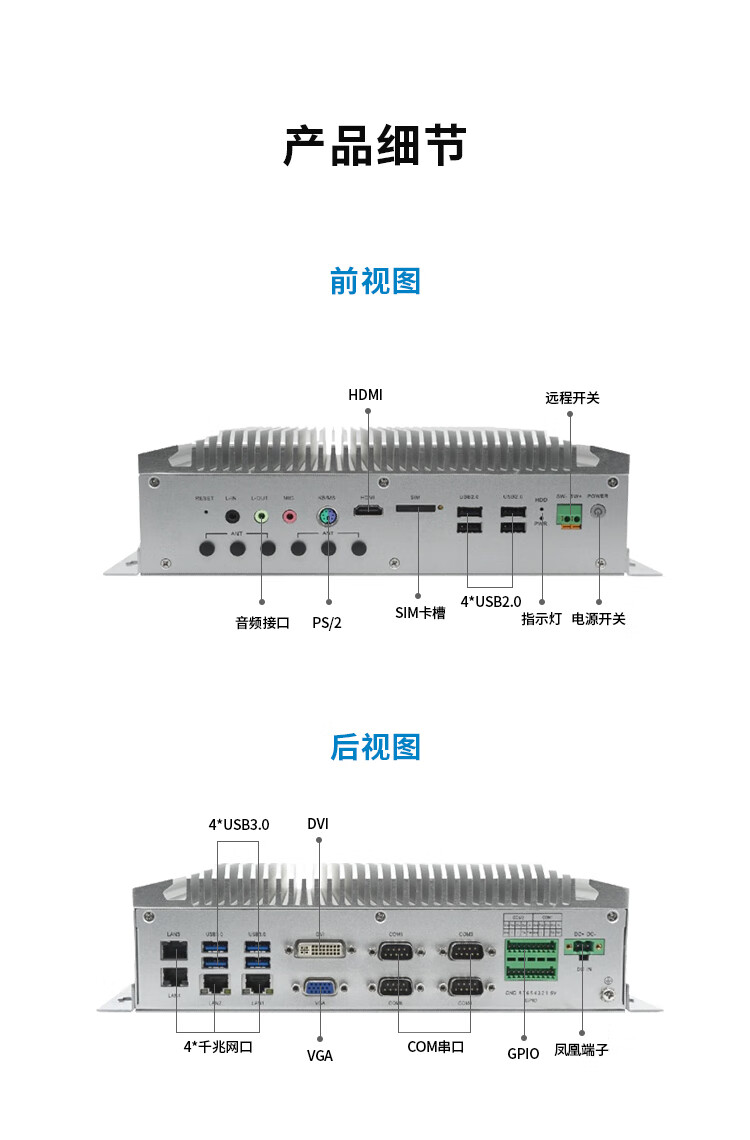 ¥3850.00GITSTAR集特 嵌入式无风扇酷睿工控机H110芯片组G102(I7-6700TE/16G/512G/DC19V/4.74A/90W适配器)