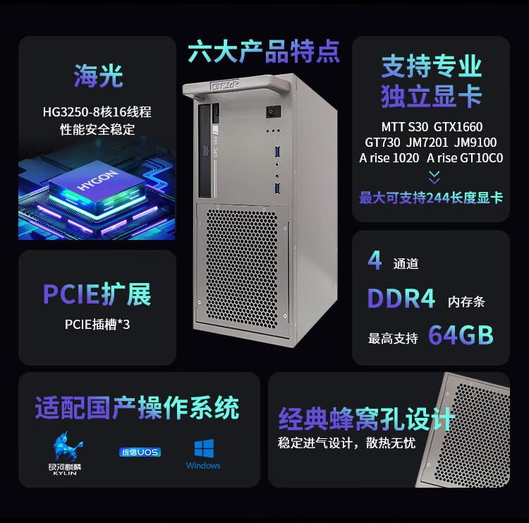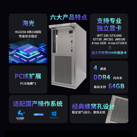 ¥4658.00GITSTAR集特 国产海光HG3250商用办公台式机GPC-100(16G/128GSSD+4T机械/GT730 2G/4网口卡/700W)