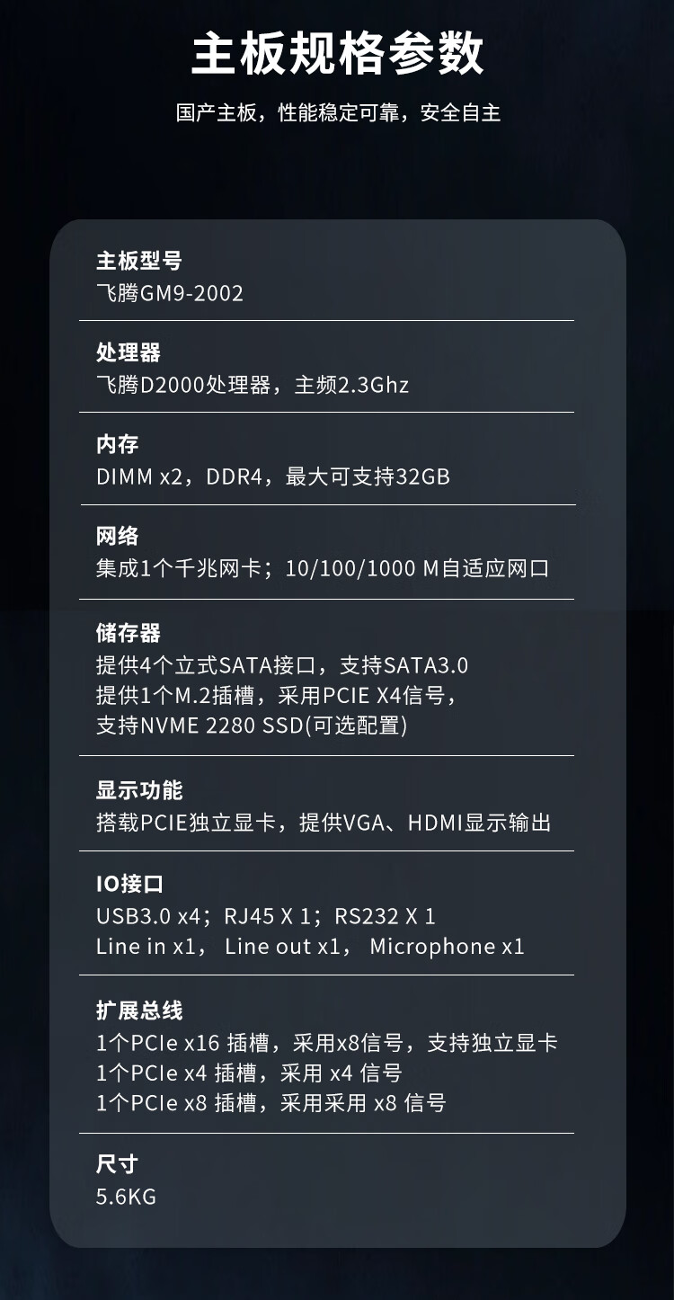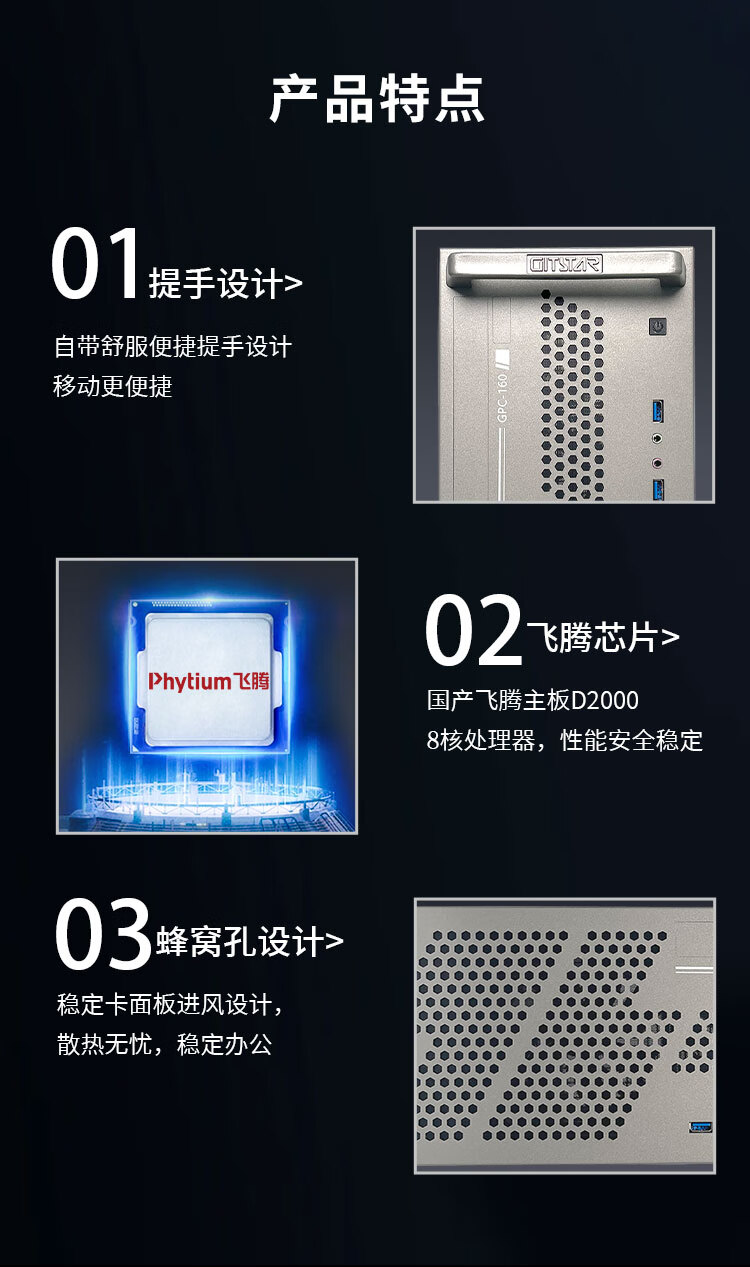 GITSTAR集特国产化飞腾D2000商用办公电脑台式主机GPC-160(16G/1TGSSD/JM72012G) 自营