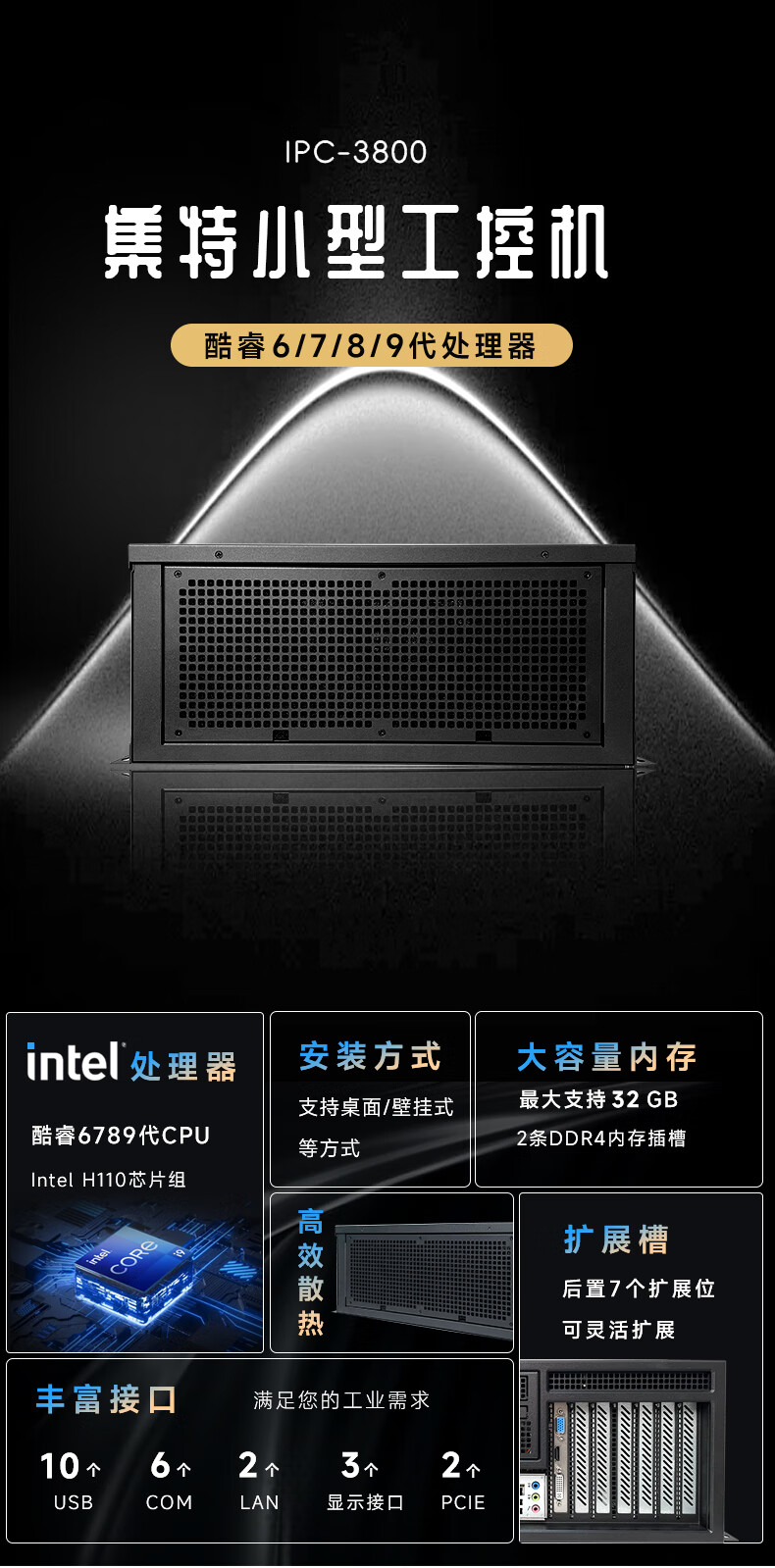 GITSTAR集特酷睿6/8/9代桌面壁挂工控机IPC-3800工业控制计算机服务器(I3-8100/4G/128G/1T) 自营