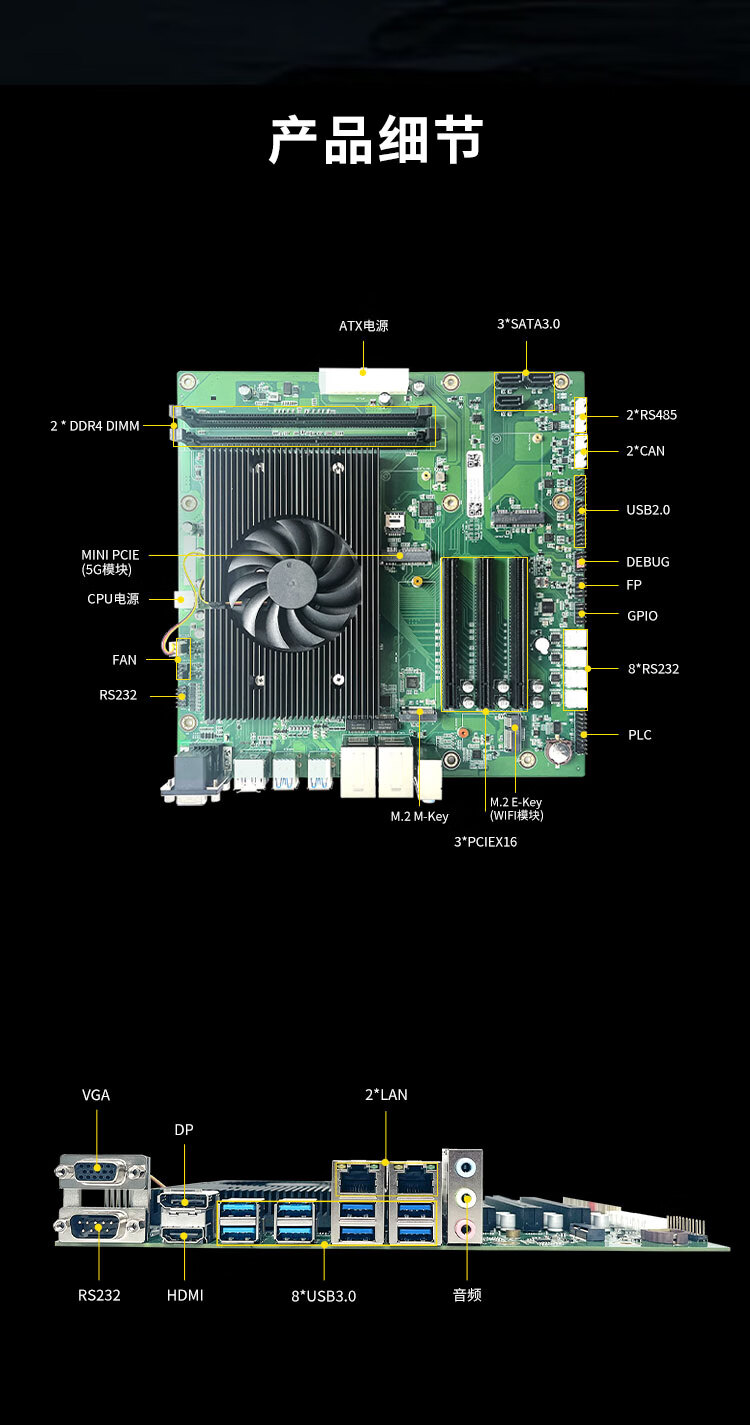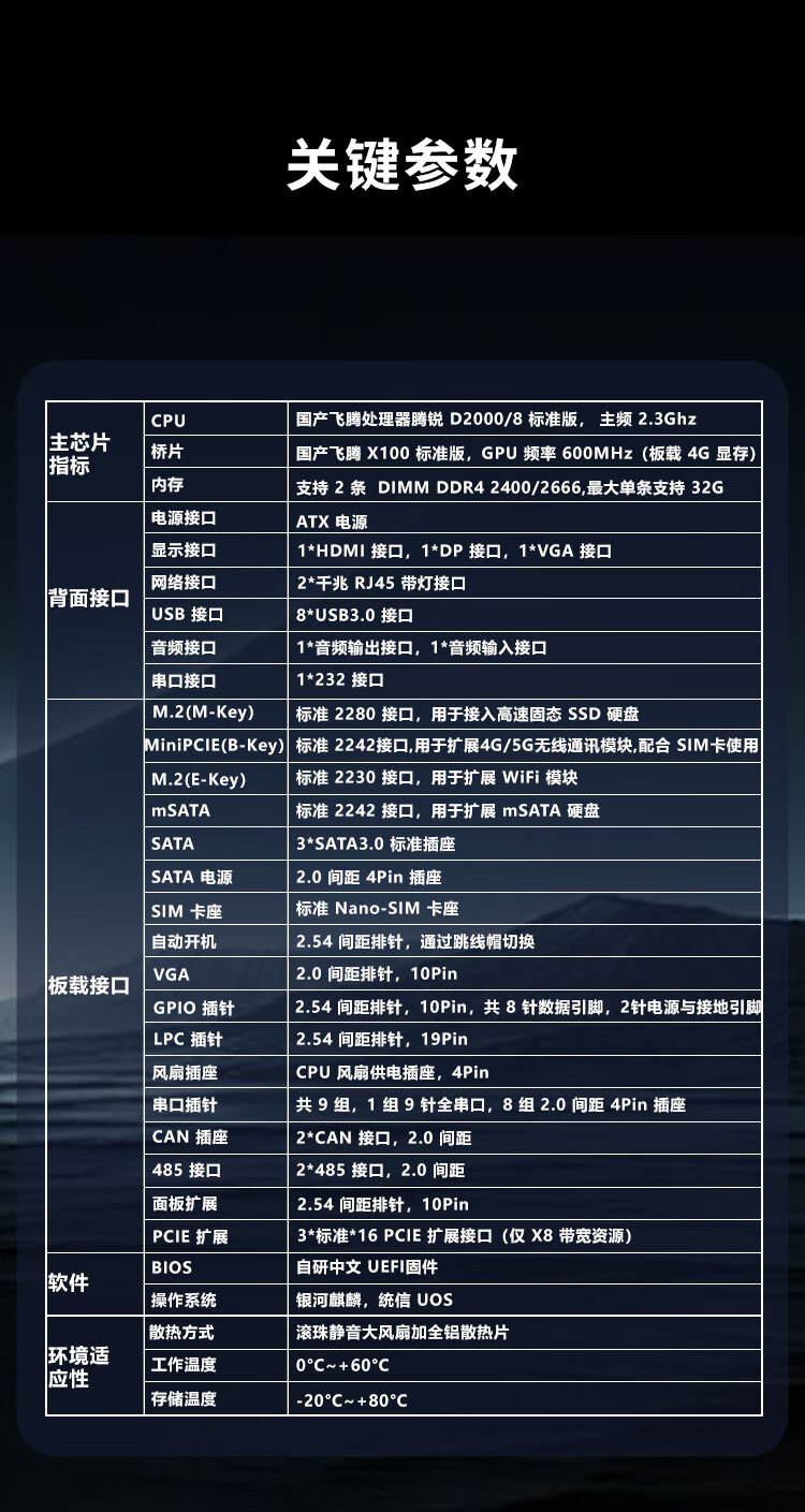 GITSTAR集特纯国产化飞腾D2000八核处理器工控主板GM9-2602-22主频2.3Ghz适用工控机 自营