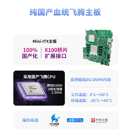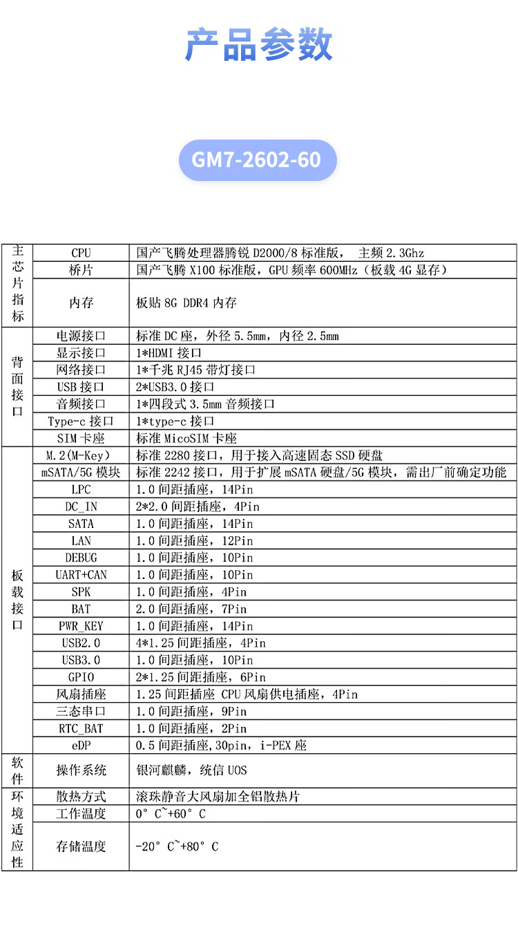 GITSTAR集特纯国产化Mini-ITX主板GM7-2602-60飞腾D2000八核2.3Ghz适用工控主板 自营