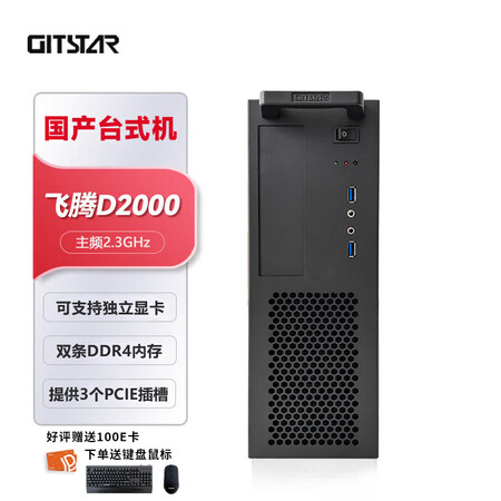 GITSTAR集特 国产化飞腾D2000八核3C节能办公台式机电脑GPC-100(16G/512G/景嘉微JM7200 2G独显/正版系统)